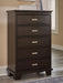 Covetown - 5 Pc. - Dresser, Mirror, Chest, California King Panel Bed - Dark Brown