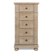 The Allegra Bedroom Collection by New Classic Furniture is the perfect blend of luxury and comfort. The Hardwood Solids and Veneers are finished with a Multistep brushed Pewter finish that is both stylish and easy to maintain. The 5 piece drawer box with dovetailed joints front and back ensures durability and the Finished drawer interiors are a beautiful touch. The full extension drawer glides make it easy to access your belongings, while the Felt-lined top drawers protect your delicate items.