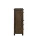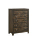 The Blue Ridge 5 Drawer Chest by New Classic Furniture is a sustainable storage solution that seamlessly blends environmental consciousness with timeless design. Crafted from reclaimed solid wood sourced from various origins, this chest is a testament to eco-friendly practices, contributing to the preservation of our natural resources. The naturally timeworn appearance, marked by nail and bolt holes, bug holes, water and mineral staining, checking, and open knots, ensures that each chest is a one-of-a-kind piece. The inherent strength of reclaimed wood, fortified through years of service and a finger joining technique, guarantees stability and durability. A multi-step finish, featuring rustic brown with gray undertones and charcoal glazing, accentuates the heavily distressed aesthetic. The five drawers, equipped with kenlin glides and hammered metal pulls, provide effortless operation for clean and carefree storage. With drawers sanded, sealed, and the top one lined with felt, this chest is a reliable and statement-making addition to your home. Backed by a 1-year limited warranty, the Blue Ridge Chest offers both quality and peace of mind