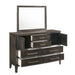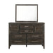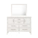 The Andover Dresser Mirror is a perfect complement to any bedroom, combining durability, style, and functionality. Expertly crafted from solid Rubberwood, manufactured woods, and wood veneers, this mirror is built to last while showcasing the natural beauty of real wood. The rich finish is achieved through a meticulous multi-step process, including sand-throughs and white glazing, which imparts a weathered yet sophisticated appeal, highlighting the unique grains and characteristics of the wood. The pristine, low-distortion beveled glass is beautifully encased in picture frame-style moldings, offering a clean and refined look that enhances any space with timeless elegance. This mirror not only serves a practical purpose but also adds a touch of sophistication to your bedroom decor.