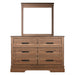 The Coventry Hall Mirror in Pecan offers durable and stylish construction, making it an ideal addition to any bedroom. Crafted from high-quality manufactured woods and topped with eco-friendly decorative laminate, this mirror ensures long-lasting use and stability. The modern rustic design combines the warmth and texture of natural wood with clean lines and minimalism, making it versatile enough to complement various decor styles. The eco-friendly laminate not only captures the organic look of natural wood but also resists scratches, stains, and moisture, maintaining its beauty over time. The low-distortion glass provides a clear and true reflection, adding both functionality and elegance to your space. The Coventry Hall Mirror is a practical and sophisticated choice for enhancing your bedroom decor.