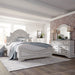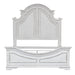 Opt for an elegant display. A refined yet relaxed feel describes the Magnolia Manor panel bed, dresser, and mirror. Crafted of poplar solids with white oak and birch veneers, this kit features an antique white finish with heavy artistic chipping. The bed features arched crowning and dog bone accents on each corner effortlessly adding both definition and character, completing your look. The dresser and mirror duo are the perfect way to accent your room. Weathered brown whitewash tops paired with the antique white finish creates a truly unique look. Softness is added to the design with canted corners and rounded pilasters, accompanied by bead molding on each drawer front. Warm antique finishes and artistic distressing along with grand scale creates a group to be passed to generations.