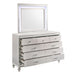 Discover the Valentino 9 Drawer Dresser—a marvel of durable craftsmanship crafted from a blend of manufactured and solid woods, adorned with exquisite embossed inlays. Radiating with glitz and glam, its gleaming finish, mirrored trims, crystal-studded drawer pulls, and alligator-embossed accents capture the essence of Hollywood allure. Delight in its thoughtful details, from heirloom-crafted English dovetailed drawers with snag-free interiors to smooth full-extension ball-bearing glides. With an abundance of storage, this dresser offers ample space to organize your clothing and belongings effortlessly. Experience luxury and functionality combined in this unparalleled piece of furniture.