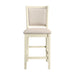 The Amy counter chair is designed to bring a perfect blend of durability, comfort, and style to your dining room. Included in this set are two counter chairs along with all the necessary hardware and assembly instructions for effortless setup. Crafted from solid Rubberwood, these chairs embody both the long-lasting and the inherent beauty of wood construction. The resilient and attractive upholstery features 100% polyester fabric, covering the seat and back cushions for a comfortable and lasting seating experience. Supported by solid wood legs reinforced with base stretchers that cleverly double as footrests, these counter chairs are built to last. The stylish design elements, including tapered legs, double X-back wood detail, weathered edges, and plush cushions, create a relaxing and distinctive chair that seamlessly complements your dining space.