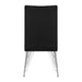 The Ava Dining Chairs, sold in sets of two, blend durability, comfort, and modern elegance. Crafted from solid Rubberwood and stainless steel, they offer long-lasting support for daily dining or special occasions. Upholstered in soft black velvet (100% polyester) with sleek chrome legs, these chairs provide a luxurious look and feel that’s both stylish and easy to maintain—perfect for elevating any contemporary dining space.