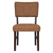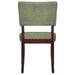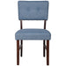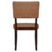 The Tioga Dining Chairs, available in sets of two, bring durable craftsmanship and modern style to your dining space. Each chair is constructed from solid Rubberwood and reinforced with base stretchers, ensuring strong and stable support. With clean lines, a minimalist approach, smooth surfaces, and geometric shapes, these chairs contribute to a sleek contemporary aesthetic. The warm Cherry finish enhances the natural beauty and grain patterns of the wood, adding a touch of elegance. Comfortable seating is assured with button-tufted padded backrests and resilient foam cushions covered in easy-care, 100% polyester fabric. Perfect for any dining room, these chairs combine style, comfort, and durability for an unparalleled dining experience.