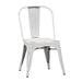 Indulge in classic vintage styling and industrial feel with the Vintage Series bow back side chair. Crafted of metal, this piece features multiple finish options and heavy distressing. Distressed metal finishing accompanied by colors that can mix and match offer a unique designer look.
