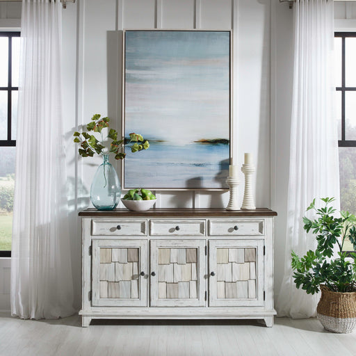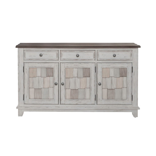 Raise the bar on modern farmhouse style with this dining buffet. Its handsome good looks are accentuated with a two-tone finish and a casual butche...