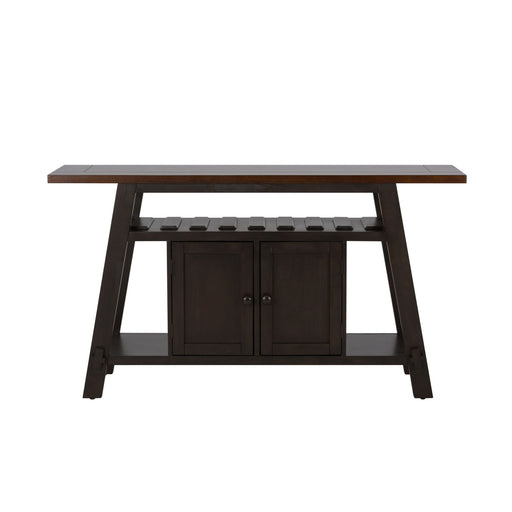 Liberty FurnitureGather the family around the Double Bridge optional gathering table set, consisting of the trestle table and four upholstered counter chairs. Craft...