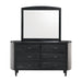 The Skyline Mirror in Onyx merges modern style with craftsmanship, making it a sleek addition to your space. Framed in solid Rubberwood, engineered woods, and Ash Wood veneers, it balances durability and contemporary design. The Onyx Black finish with gray glazing enhances the wood grain for a luxurious look. Encased in this sleek frame, the clear, low-distortion glass provides stunning clarity, delivering true-to-life reflections that brighten your room. A bold, stylish, and functional accent.