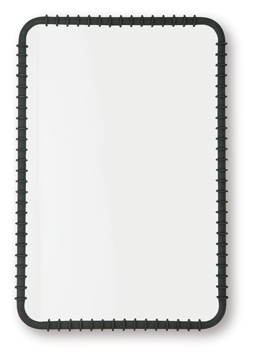 This accent mirror's sleek black finish and ribbed design add a touch of contemporary chic to any room. Its versatile hanging options allow you to ...