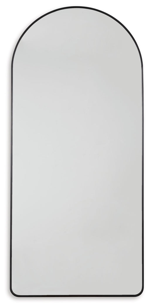 Signature Design by Ashley®Beauty reflects in contemporary style with this floor mirror. Its black-finished metal creates a lovely curved frame. Standing almost six feet high...