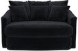 Matty is a large scaled Round Accent Cuddle Chaise and provides three back pillows and three accent pillows to form your perfect seat. Easily comfortable for two, this eclectic piece is available in your choice of three colors: Ebony, White or Pewter.