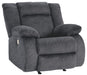 If highly contemporary looks and a heavenly feel sit well with you, rest your eyes on this power rocker recliner. Padded velvet upholstery has a plush high pile that's so soft to the touch. Jumbo contrast stitching adds fashion-forward flair, while radius cut arm frame incorporates cool, curvaceous interest. At your fingertips: one-touch power control with a zero-draw USB plug-in that’s not only convenient but also energy efficient. When it comes to high style at a down-to-earth price, this power recliner really brings it home.
