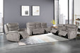 Indulge in the luxurious comfort of the Kamari Reclining Sofa Set. Crafted with a sumptuously soft dappled gray upholstery, this set invites you to sink into relaxation. Tailored to perfection, its triple roll backs, bucket seats, and wrap-around arms exude sophisticated style, accentuated by tasteful contrasting welt detailing. Recline and unwind with fully upholstered chaise recliner footrests, offering unparalleled comfort. Built for lasting support, hardwood and manufactured wood frames, coil spring cushions, and resilient foam ensure durability and coziness for years to come. Convenience meets style with the loveseat''s center console for remote storage and built-in cupholders for your beverages. Versatile in design, whether your taste leans contemporary or traditional, this set effortlessly complements any decor.