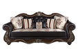 The Royal Classics Maximus Living Room Sofa blends heirloom-quality craftsmanship with timeless elegance, making it a luxurious addition to any refined living space. Expertly crafted from solid pine and adorned with premium polyurethane carvings, this sofa is both lightweight and durable, resistant to moisture, rot, and cracking, while maintaining its intricate details with minimal upkeep. The multi-step finish enhances the natural grain of the wood, with delicately burnished gold tipping accentuating the ornate carvings for a touch of luxury. Inspired by traditional Baroque design, the sofa’s exquisite Rococo-style ornamentation adds a sense of regal sophistication to any room. Upholstered in rich brown vegan leather and complemented by soft-textured and elegantly patterned pillows, the sofa offers both a refined aesthetic and inviting comfort. Button-tufted backs and nailhead trims trace the graceful curves of the wood frame, providing exquisite attention to detail. For added convenience, the upholstery backs and bases are shipped separately, ensuring easy transport and hassle-free setup. Perfect as the centerpiece for a stylish, sophisticated living room.