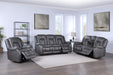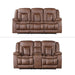 The Morello Reclining Sofa and Console Loveseat is a perfect blend of comfort and style, ideal for any living room. This set includes a plush couch and a convenient console loveseat, both upholstered in 100% polyester fabric that mimics the luxurious look of leather without the high cost. The saddle color adds a warm, inviting feel to your space. Designed for durability and style, the Morello set features double-stitch detailing and overstuffed arm, seat, and back cushions for superior comfort. The fully upholstered chaise recliner footrests provide an unparalleled relaxation experience. Built with a combination of hardwood and manufactured wood frames, coil spring cushions wrapped in resilient foam, and no sag seat suspension, this set ensures long-lasting comfort and support. The loveseat''s center console offers practical features such as storage for remote controls and built-in cupholders for your beverages. With its casual, transitional style, the Morello set brings a comfortable, lived-in ambiance to your home. Experience the perfect mix of style, comfort, and convenience with the Morello 2 Piece Reclining Sofa and Console Loveseat.