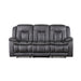 The Morello Dual Recliner Sofa brings together comfort, style, and functionality for your living space. Upholstered in sumptuously soft 100% polyester fabric, this couch mimics the luxurious look of leather without the higher price tag. The Morello Set features double-stitch detailing, ensuring durability and a touch of sophistication. Plush, overstuffed arm, seat, and back cushions are contoured to enhance overall comfort, making relaxation effortless. Fully upholstered chaise recliner footrests provide the ultimate in comfort, allowing you to find your most restful position. Constructed with hardwood and manufactured wood frames, coil spring cushions wrapped in resilient foam and polyester, and no-sag seat suspension, this sofa promises years of enjoyment. The casual, transitional style, with its leather-look upholstery and overstuffed cushioning, creates a comfortable, lived-in ambiance, making the Morello Dual Recliner Sofa a perfect addition to any home.