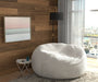 Comfort Sack and Footstool available in three colors: Chocolate, Parchment, and Grey.