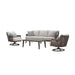 The Genova Patio Set, featuring a spacious patio sofa and a stylish coffee table, effortlessly combines durability, comfort, and modern sophistication for any outdoor space. Built with durable aluminum frames and a baked-on powder coat finish, this set offers superior scratch resistance and long-lasting performance. Designed for all-weather durability, the furniture is wrapped in high-density PE wicker, an eco-friendly synthetic resin that provides the classic look of wicker with the added benefits of being low-maintenance, colorfast, and resistant to water, mildew, and fading. The sofa features plush 6 ½" high-density foam seat and back cushions upholstered in premium light gray Sundura™ fabric—a solution-dyed 100% polyester that resists fading, mildew, and moisture, ensuring vibrant color and lasting protection season after season. The coffee table’s slatted top adds a classic touch while promoting water drainage for added practicality. Designed with clean lines, neutral tones, and a woven rope seat back, this set delivers an open, airy feel with solid structural support. The minimalist design is enhanced by evenly spaced vertical strands, bringing a refined texture and contemporary elegance to any outdoor setting.