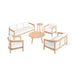 The Wesley Wood Patio Set offers the perfect combination of durability, comfort, and modern elegance for any outdoor space. Expertly crafted from FSC-Certified Acacia solid wood, this set provides exceptional strength and natural resistance to the elements, ensuring long-lasting beauty and performance. The carefully applied light, clear multistep finish enhances the wood’s rich texture and color while adding a protective layer for enduring durability in any outdoor environment. Designed for ultimate comfort, the loveseat features high-density 12cm foam seat and back cushions wrapped in premium Sundura™ fabric, a solution-dyed 100% polyester that resists fading, mildew, and moisture, keeping the set vibrant and fresh season after season. The minimalist and airy design showcases sleek, clean lines and gently rounded shapes, blending contemporary style with natural, organic charm. Each piece is truly unique, highlighting natural wood grain variations with distinct patterns and textures that bring timeless beauty and authentic character—ensuring no two pieces are exactly alike.