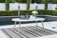 This dining table invites your casual contemporary style outdoors. With an elegant faux stone top, it expertly marries refined design with durability. At this table, breezy summer mornings and cold winter nights are made all the more enjoyable.