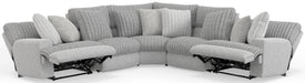 Abraxas is a Modular Reclining Sectional with a contemporary track arm design. A luxurious faux fur fabric and a variety of correlating toss pillows provide added style and seating comfort.