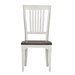 Sit in comfort and style with the Allyson Park slat back side chair. Crafted of poplar and rubberwood solids, this piece features a wire brushed finish, nylon chair glides to protect your flooring, curved wooden seat for added comfort, a slat back, and is anchored by square tapered legs. This chair is perfect for creating a classic look while maintaining a casual feel.