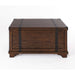 Design possibilities are endless with Aspen Skies works with styles from rustic to farmhouse. Crafted of pine solids and New Zealand pine veneers in a brown finish with metal accent. Features planked tops with corner and body metal strap accents with nail heads. Trunk features casters, bracket feet full cedar lining inside with a trey for smaller items. End tables offer tapered legs with one drawer. This traditionally designed collection will add warmth and charm to any room in the house. Kit consists of one trunk and two end tables.