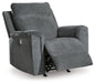 The ability to go from fully upright to relaxed and stretched out, all at the touch of a button, awaits. A beautiful blend of plush upholstery and traditional style, this power rocker recliner invites you to sink into ultimate comfort. And with its tranquil rocking motion, you'll find it hard to leave your living room—that’s a given.