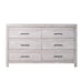 Introducing the Biscayne Six Drawer Dresser, meticulously crafted with durable manufactured wood and adorned with an Eco-Friendly decorative laminate for enduring strength and stability. Its finish creates a light, airy ambiance, perfect for unwinding at the end of a busy day. The dark iron finish drawer pulls add a contemporary touch, contrasting beautifully with the dresser's clean design. Versatile in style, this dresser seamlessly blends with various motifs, from coastal to contemporary, farmhouse to urban rustic. Plus, with time-tested drawer construction featuring English dovetail joinery and smooth metal center drawer glides, functionality meets elegance in this essential bedroom piece.