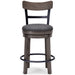 Bring a relaxed yet refined sense of good taste to a space with this upholstered swivel bar stool. The sturdy wood frame with contoured backrest is beautified with an antiqued gray wash finish that’s easy on the eyes. Rest assured, this bar stool caters to your comfort with a cushioned seat with gray textured fabric accentuated with nailhead trim. Sensible swivel design keeps you in the flow of conversation.