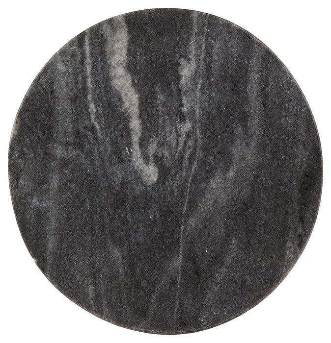 Marvel at the marbled mastery of this high-end accent table. Made of beautiful black and white marble, the round tabletop is supported by a sturdy goldtone pedestal on a white marble base. With a sleek, tapered profile, this space-saving table is striking from every angle.