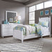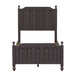 Bring in clean lines with the Cottage View panel bed, dresser, and mirror. Crafted of melamine and rubberwood solids, this kit features a dark gray finish, picture frame solid wood case moldings, bun feet, bluff-cut top drawers, and is accented with wooden knob hardware. The panel bed features square posts with round finials along with slat overlays. The dresser features six drawers and pairs nicely with the beveled edge mirror that can be attached with the included bolt-on supports. With cottage design always in fashion, make the Cottage View a part of your home.