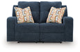 This reclining loveseat invites you to a luxuriously soft lounging experience. The chic hue fits right in with contemporary color palettes. A tufted back keeps the look right on trend. Balancing style and function, its pull tab reclining effortlessly takes you to relaxation mode.