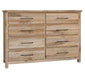 60 inch 8 drawer master dresser with all the splits; cracks; knot holes – all of the aging and refining that can only be provided by Mother Nature herself. Featuring English Dovetail design in the top front corners of the top.