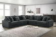 The Embrace Dual Chaise Lounge is a luxurious and versatile addition to your home, perfect for both lounging and accommodating guests. Featuring 100% charcoal gray polyester fabric with a fluffy, blanket-like texture, this chaise lounge is designed for ultimate relaxation. It includes three large accent pillows that enhance its cozy and inviting look. The high-density, resilient foam cushions provide supportive and comfortable seating, ensuring a relaxing experience. Built with a durable frame made from a combination of solid and manufactured woods, this chaise lounge promises long-lasting quality. Spanning almost the size of a queen bed, the dual chaise lounge doubles as a guest bed, offering extra sleeping space. Its transitional styling and luxurious ribbed channel fabric, along with the abundance of snuggly pillows, invite you to lounge and unwind in unparalleled comfort.