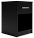 Practical and attractive, this nightstand blends seamlessly with modern decor and makes a smart addition to a bedroom. The smooth-gliding drawer on metal ball bearings is ideal for bedside essentials. An open cubby provides a nice place for a storage basket or vase. The nightstand's curved metal pull in a brushed nickel-tone finish adds to the streamlined aesthetic. Combine with other units in the collection to create a room that’s sleek and stylish.