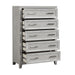 Discover the Fiona 5 Drawer Chest, a testament to craftsmanship where functionality meets artistry. Constructed with Acacia Solids, Manufactured Woods, and Oak Veneer, this chest combines the timeless allure of real wood with enduring strength and stability. The natural wood grain is brought to life with a meticulous multi-step finish, featuring wire brushing and white glazing, culminating in a light, clear mist gray hue that complements any interior. The chest’s design boasts sophisticated picture frame moldings, tapered legs, and sleek drawer pulls that echo a classic aesthetic. Its transitional style seamlessly adapts to both traditional and contemporary spaces, ensuring the Fiona Chest is a versatile addition to your home. The drawers, built with French front and English back dovetail joinery, ensure robust construction and glide smoothly on full extension glides for ease of use. Moreover, the drawers are sanded and sealed to protect your clothing from snags, while the top drawer is felt-lined to safeguard your delicate items. The Fiona 5 Drawer Chest is not just furniture; it’s a durable, stylish storage solution crafted for longevity and elegance.