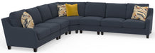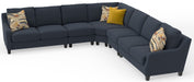 Foley is a moderately scaled Sectional with a low track arm. A colorful gold/navy/red pillow package adds color and texture to the rich body fabric. A companion Accent Chair in a correlating fabric offers additional seating possibilities.