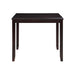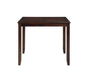 Complete your dining space with the New Classic Furniture Gia Wood Square Counter Dining Set, a harmonious blend of durability and beauty. Crafted from solid Rubberwood and Mindi veneers, this set is designed to withstand the test of time. The traditional finish, achieved through a meticulous multistep process, enhances the natural grain of the wood. The spacious 42-inch square counter table comfortably accommodates four, making it an ideal setting for intimate gatherings. The chairs, with 100% polyester upholstered cushions, are supported by solid wood legs reinforced with four base stretchers, doubling as footrests for added stability. The distinctive design includes a fancy face reverse diamond veneer dining tabletop, interlocking chain chair back detail, and tapered legs. Assembly is easy with all necessary hardware and clear instructions included. Backed by a one-year warranty, this Gia Dining Set offers both practicality and style for your dining area. Invest in quality and enjoy timeless design with this functional dining set.