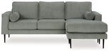Simple comfort meets modern function in this sofa chaise. An apt addition to apartments and other small spaces, this slim-profiled piece welcomes you with its cozy character. A subtle chevron pattern on the cushions refresh the classic neutral hue, elevating the look while still suiting a variety of styles. Black accent legs add a dash of contemporary flair.