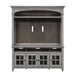 Accent your living room with the perfect vintage design, using this unique and stylish entertainment center. Crafted with rubberwood solids, bottom case dust proofing, wood framed glass doors, additional shelving in the hutch, LED touch lighting to illuminate the piece, is anchored by heavy tapered feet and accented by timeless antiqued brass knob hardware, and can accommodate most 65" TVs. With today's modern technology in mind, users can enjoy the convenience of the open compartment areas and wire management provisions to hide those pesky wires from your DVD player or gaming console of choice.