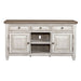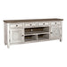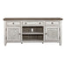 Accent your living room with the perfect vintage design, using this unique and stylish tile tv console. Crafted with rubberwood solids and cathedral white oak veneers, this piece accommodates most TVs and features an antique white finish with tobacco tops, three drawers, planked tops, full extension drawer glides for easy access to storage, two reversable/interchangeable decorative door panels, making this piece customizable, and is accented by timeless antiqued brass knob hardware. With today's modern technology in mind, users can enjoy the convenience of the open compartment areas and wire management provisions to hide those pesky wires from your electronics or gaming equipment.