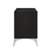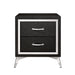 The Huxley 2-Drawer Nightstand offers a blend of contemporary glam and durable construction for your bedroom. This nightstand is carefully crafted from manufactured woods and eco-friendly decorative laminate, ensuring it will last for years. The design features clean lines with metallic accents and flared silver legs for a modern touch. Its rich finish provides a sleek, sophisticated look that is both timeless and modern, with bold highlighting the metallic accents and smooth surfaces for a chic, polished aesthetic. The quality drawer construction includes English dovetail joinery and smooth-rolling center glides for long-lasting operation. Functional and fashionable, this nightstand provides ample storage for bedside essentials, with chic, crystal-studded drawer pulls for easy access.
