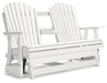 Drift away from everyday worries and into outdoor bliss with this glider loveseat. Dressed in a crisp white, the Adirondack-inspired design has a classic feel. It weathers sunny summer days and cozy winter nights with durable MEGA TUFF™ HDPE material. A drop-down console with integrated cup holders keeps refreshments and snacks within easy reach. With the console snapped into the back, this loveseat has even more room for enjoying lazy days in the shade.