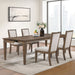 The Mariana Wood Dining Room Set is a masterful combination of timeless elegance, durability, and comfort. Crafted from solid Rubberwood, premium manufactured woods, and authentic Acacia wood veneers, the set captures the natural beauty of wood with enduring strength. Each piece features an artisanal multi-step finish in vintage Mocha, with hand-distressed details like rasping, clefting, and threading for a richly textured, time-worn appearance. The generously sized table, with its included 18" leaf, expands from 78" to 96", comfortably seating up to 8 guests. Thoughtfully designed storage drawers in the apron add convenience by keeping utensils within easy reach. The chairs, upholstered in soft, high-density foam cushions with premium polyester fabric, offer luxurious comfort for extended gatherings. Combining traditional elegance, rustic charm, and Colonial craftsmanship, this heirloom-quality dining set is perfect for elevating any dining space with warmth and style.