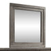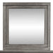 Complete your farmhouse look with this square mirror. Heavy distressing that is accented by the high/low veneer pattern that encompasses the beveled mirror. This mirror is more than a piece of furniture, it's a statement piece.