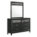 The Obsidian Dresser Mirror in Black is a perfect blend of modern design and timeless elegance, expertly crafted from premium solid Rubberwood with manufactured woods and veneers for lasting durability. Its sleek, low-sheen black finish and clean lines exude refined sophistication, while geometric cut-outs backed with mirror-like Mylar add a touch of luxury and modern glamour. Framed with elegant moldings, the mirror features clear, low-distortion glass, offering both functionality and a flawless reflection in one stylish piece.