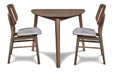 The Oscar Mid-Century Modern 3-Piece Dining Set blends timeless design with everyday function. Featuring a walnut-finished corner table and two foam-cushioned chairs, it showcases clean lines, organic curves, and a warm wood grain. Crafted from solid rubberwood and walnut veneers with a clear topcoat, this compact set offers comfort, durability, and style—perfect for kitchen nooks, small dining areas, or as an accent set in entryways and living rooms.